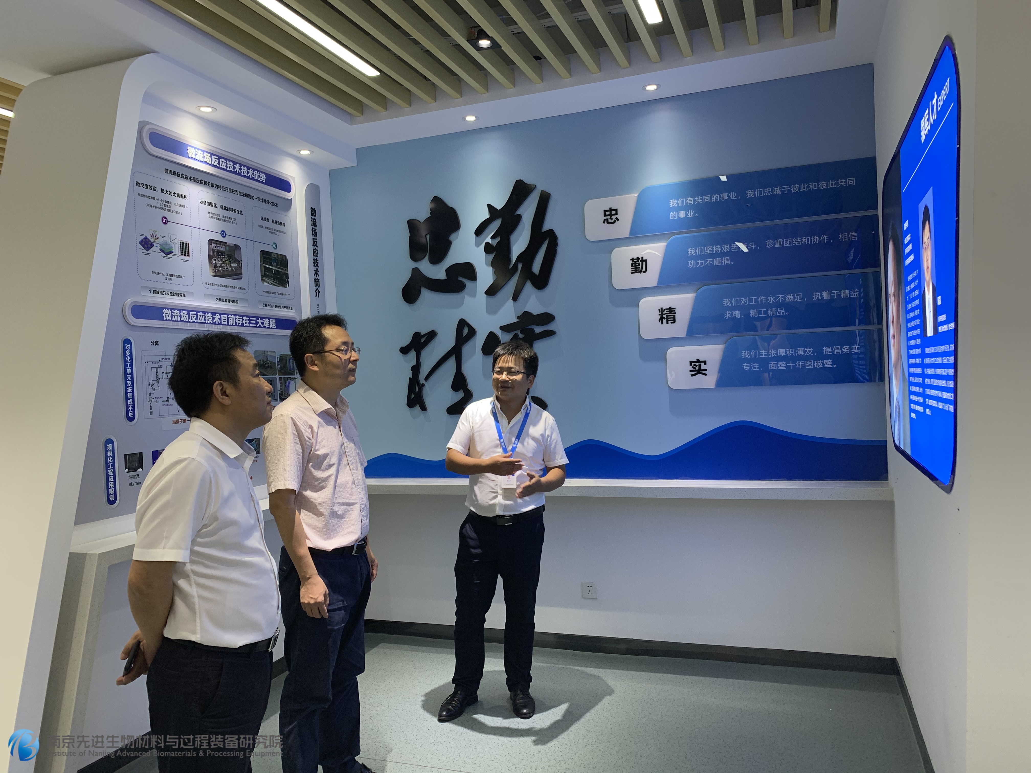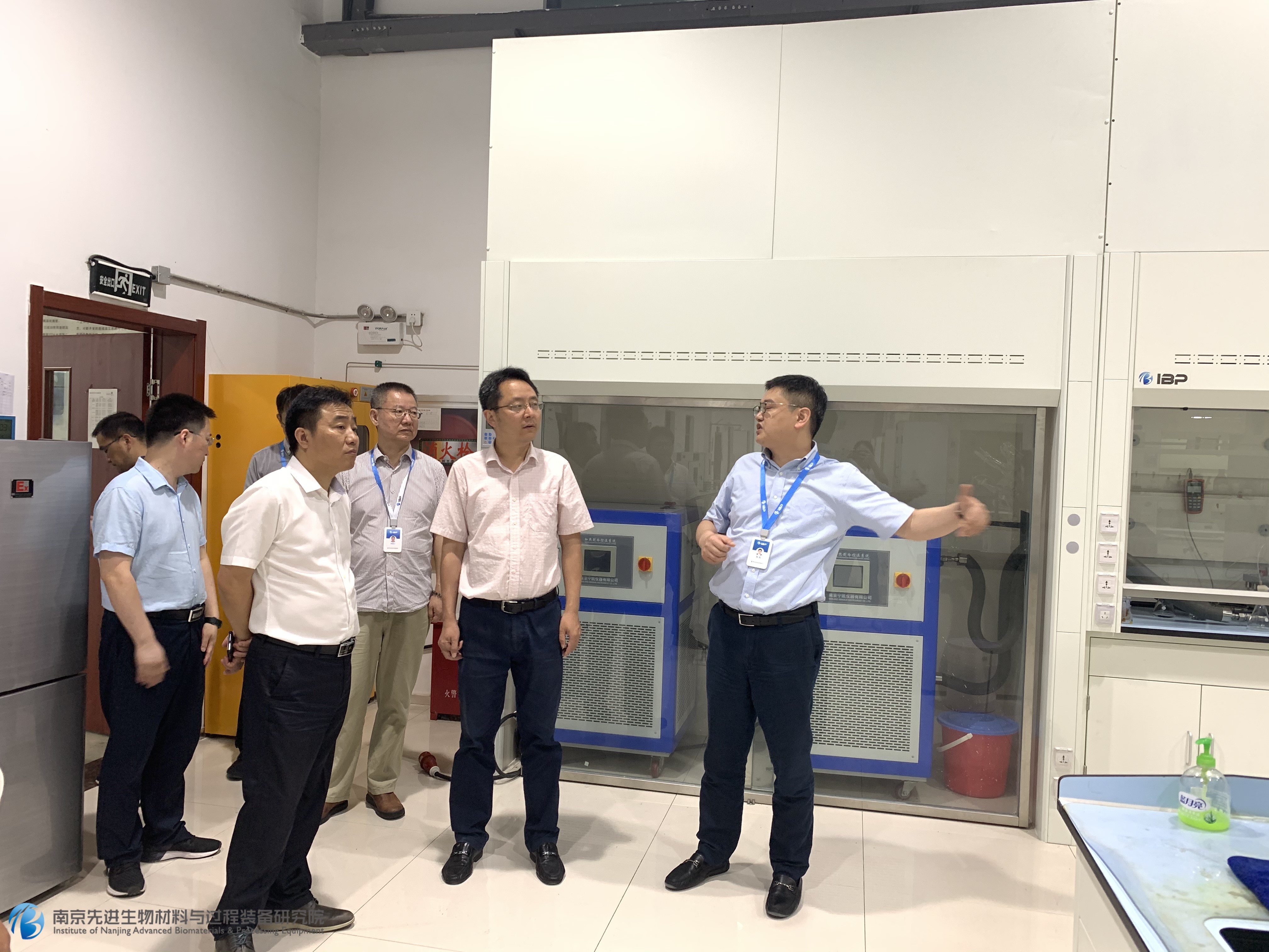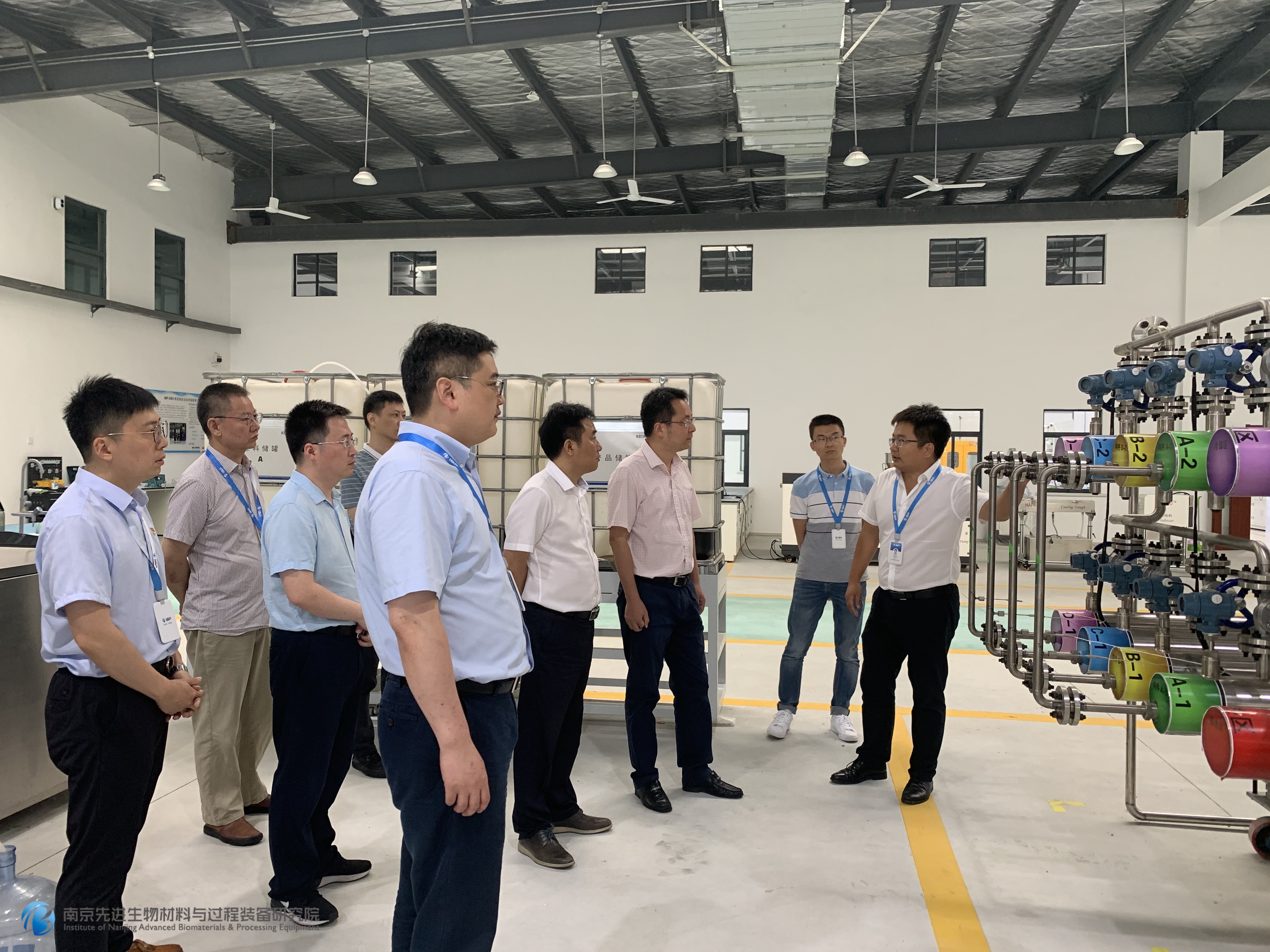 在工藝研發(fā)和分析實(shí)驗(yàn)室,郭院長(zhǎng)就實(shí)驗(yàn)工作、項(xiàng)目進(jìn)展、院校合作等內(nèi)容給在場(chǎng)領(lǐng)導(dǎo)作了陳述。