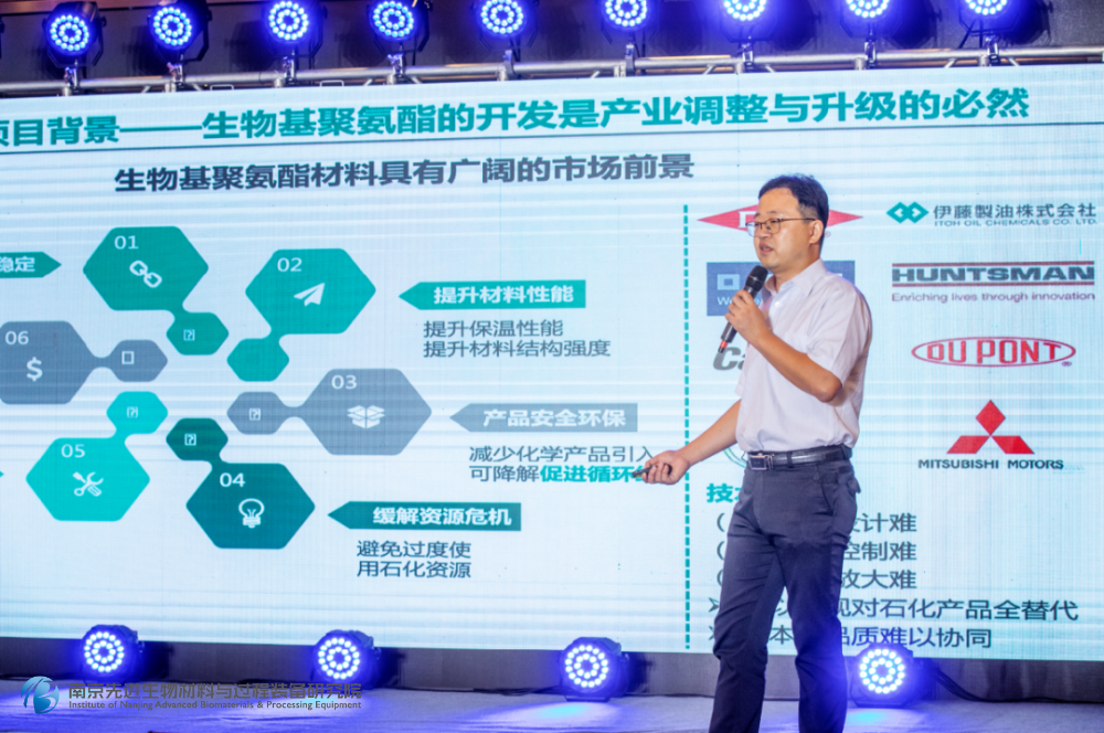 我院方正教授主持的“綠色生物基聚氨酯系列新材料”項(xiàng)目參與了此次角逐。該項(xiàng)目聚焦于聚氨酯材料的綠色合成新路線,以非食用型油脂為基礎(chǔ)原料,通過(guò)反應(yīng)機(jī)理剖析和微流場(chǎng)技術(shù)特征研究,開發(fā)了一條高效、綠色、連續(xù)且過(guò)程可控的生物基聚氨酯多元醇合成新工藝,具有重大社會(huì)意義和顯著經(jīng)濟(jì)效益。